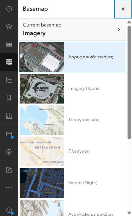 The side bar (on the left) of the Map Viewer interface provides users with essential tools to interact with and customize the map effectively. Key features include: