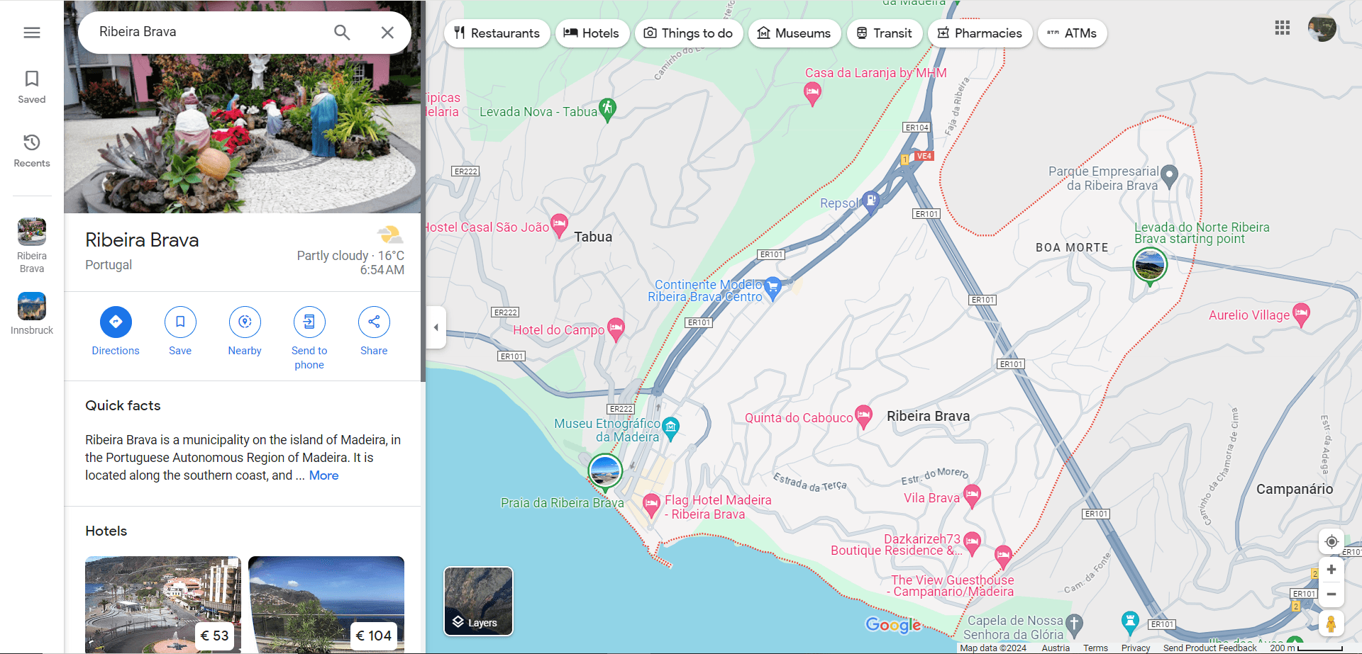 Let us now switch to another map. Now let’s take a look at the Ribeira Brava area using Google Maps.