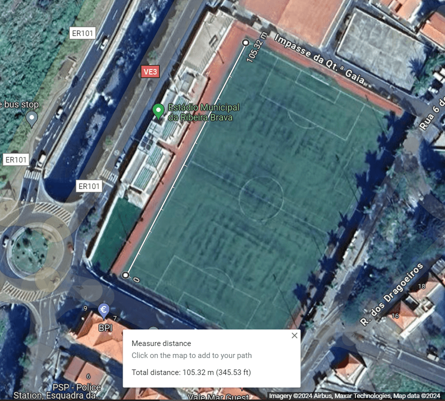 If we press the right mouse button over the image, we can measure the length of the football pitch.