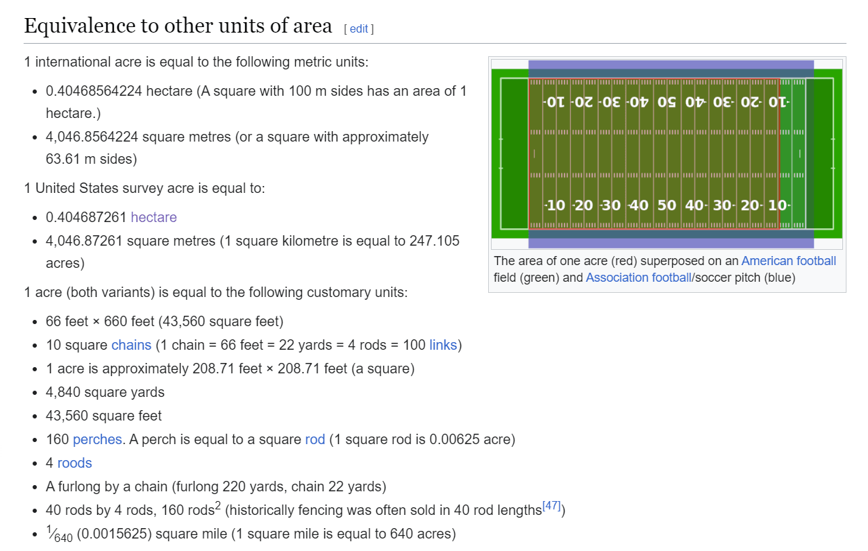 In Europe, we are not used to measuring in acres. So we will look up this information on Wikipedia.