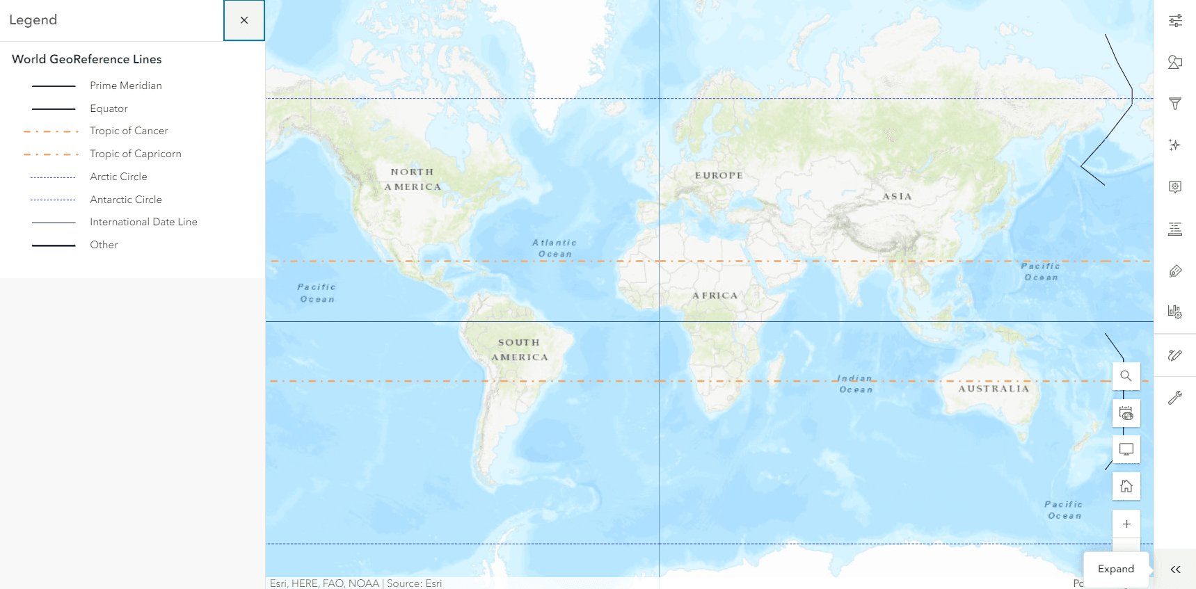 This map shows the most important reference lines on Earth.